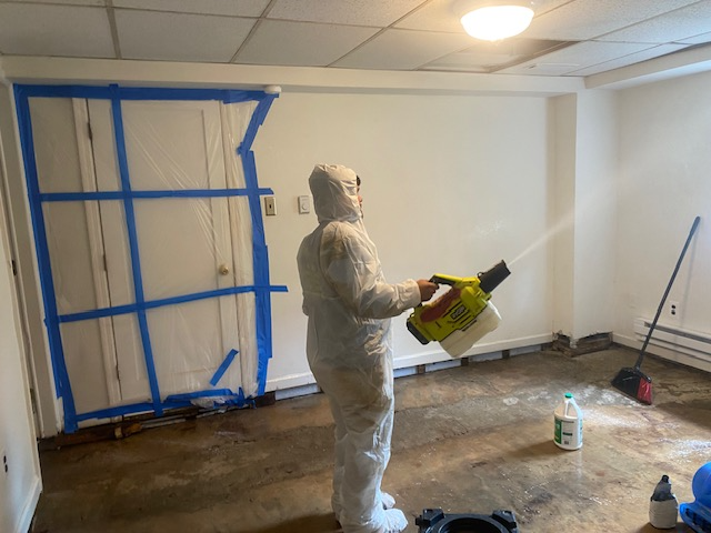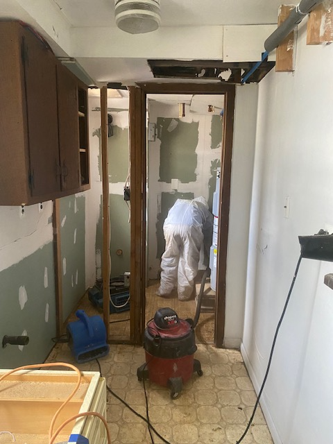 Once the damaged materials were removed, we turned our attention to cleaning and sanitizing the remaining structural components. This involved: